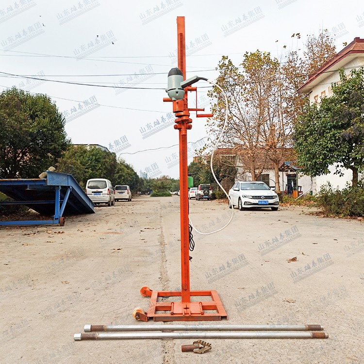 本款打井機采用了多齒輪設(shè)計,雖然增加了生產(chǎn)成本和制造工藝,但這樣設(shè)計增加了打井機力量(就像汽車一檔比四檔有力、還便于掌握一樣的道理),打井有力,打井速度快、便于掌握。如果齒輪少了,一千瓦的電機還沒有七百多瓦的電機力量大、而且轉(zhuǎn)速高、打井時難于掌握。這款多齒輪結(jié)構(gòu)鉆井機經(jīng)過許多用戶多年使用,打井效果非常理想!便攜式小型民用電動打井機廣泛應(yīng)用于家庭/工廠生活用水打井、農(nóng)田灌溉水井、安裝水空調(diào)、工地打樁等。本公司生產(chǎn)的便攜式小型民用電動打井機機頭,可隨意選配鉆頭,鉆頭價格另算。也可另配鉆桿,鉆桿直徑是32mm、一根長約1.5米。